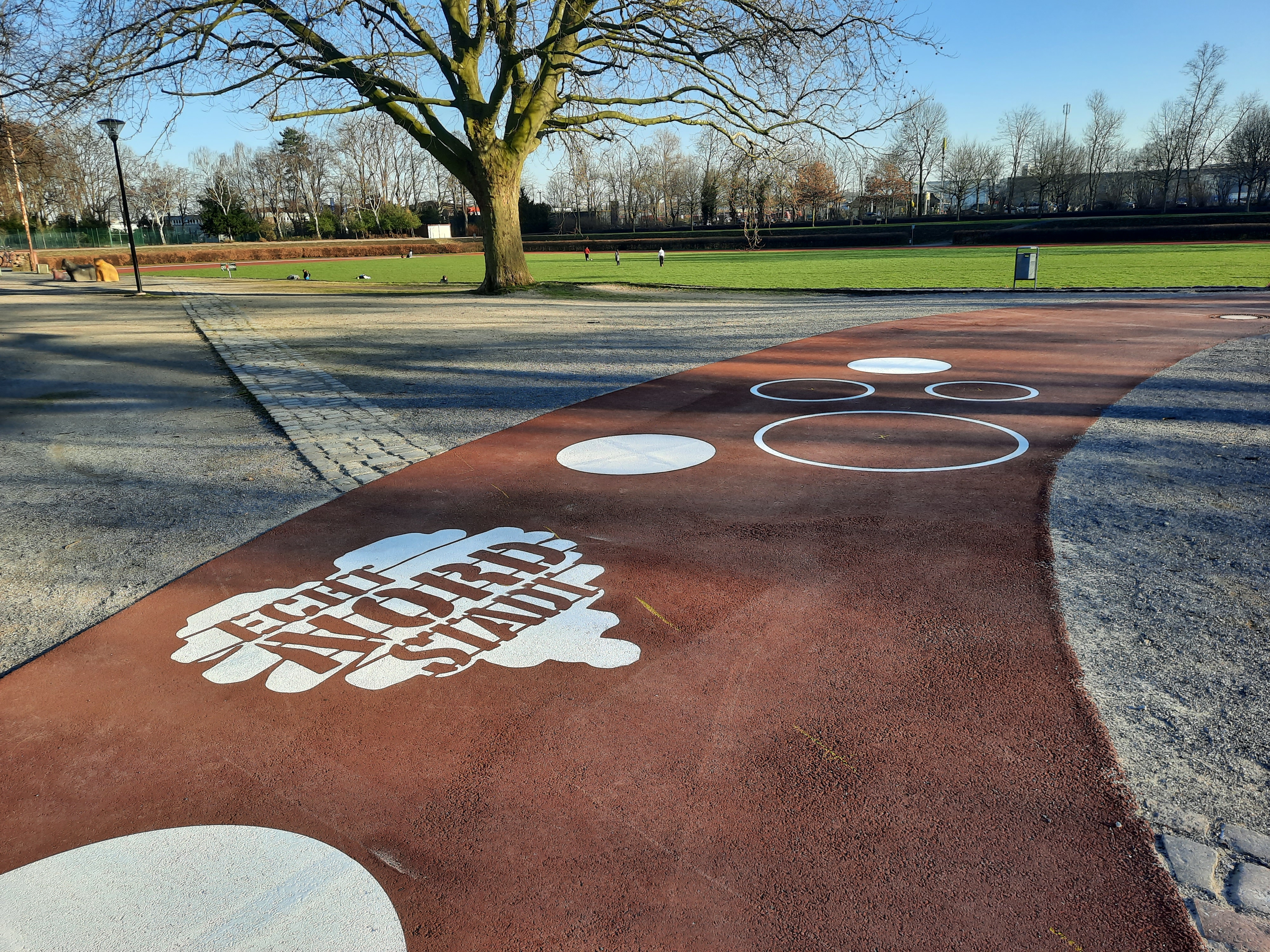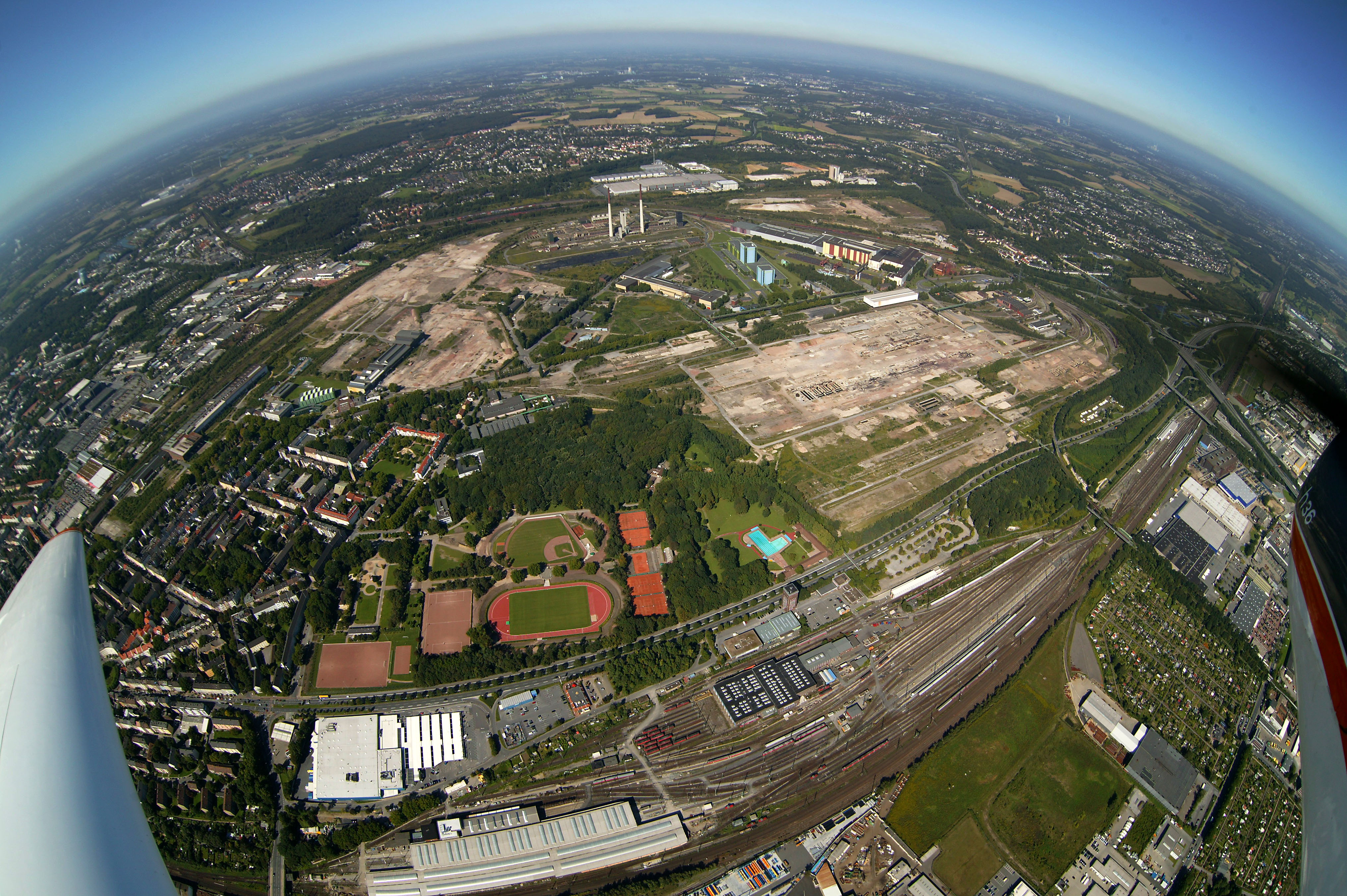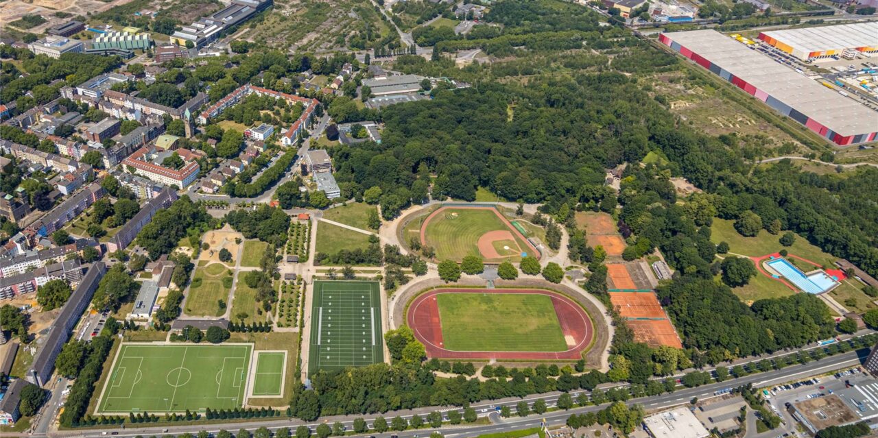 Dort, wo einst die Gründer des BVB 09 trainierten und spielten, sind heute die die Baseballer der Dortmund Wanderers zuhause, ebenso die Football-Spieler der Dortmunder Giants. Kinder spielen und schaukeln, auf den Plätzen wird gekickt. Beeindruckend zu sehen: Die noch immer verbliebenen Tribünen und die Fahrbahn der einstigen Radrennbahn.