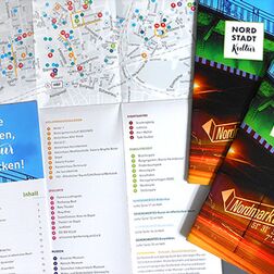 Die 2. Auflage des Faltplans NordstadtKultur bietet auf 16 Seiten die bunte Palette des Kreativ.Quartiers Echt Nordstadt, inkl. des eigeklebten Faltplans in Bookletform.